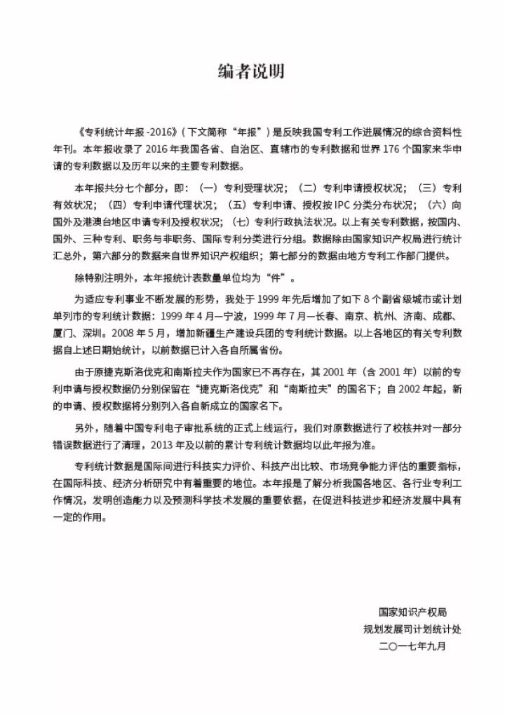 附:《2016年中國專利統(tǒng)計年報》封面與目錄